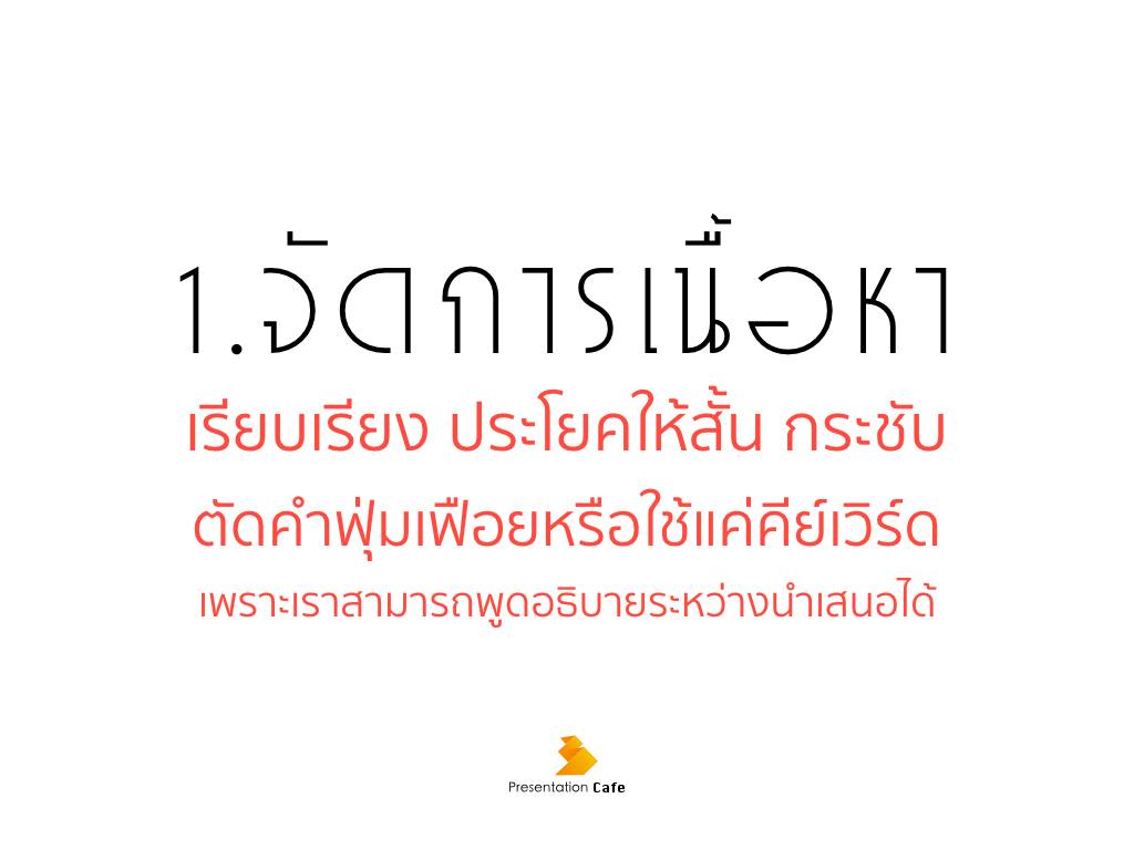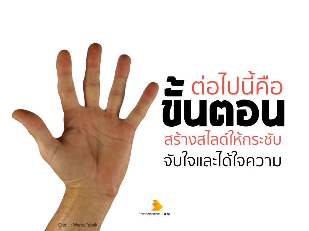มีขั้นตอนง่ายๆในการทำสไลด์ ให้สั้นกระชับได้ใจความ จริงๆแล้วก็เป็นความรู้ทั่วไปที่เราอาจทราบกันดีอยู่แล้วเพียงแต่ว่าบางทีอาจลืมไป เน้นย้ำว่าสไลด์เป็นแค่เครื่องมือที่ช่วยประกอบการนำเสนอแต่องค์ประกอบอื่นๆก็สำคัญไม่แพ้กันเช่น ตัวเนื้อหา(Content)และส่งมอบ(Delivery)