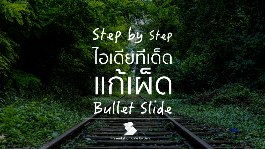 หลังจากนั้นก็พิมพ์กล่องข้อความต่างๆตามที่ต้องการหรืออาจหาพวกไอคอนต่างๆมาประกอบให้ดูงาม ลืม Bullet Point สไลด์กันไปเลยทีเดียว